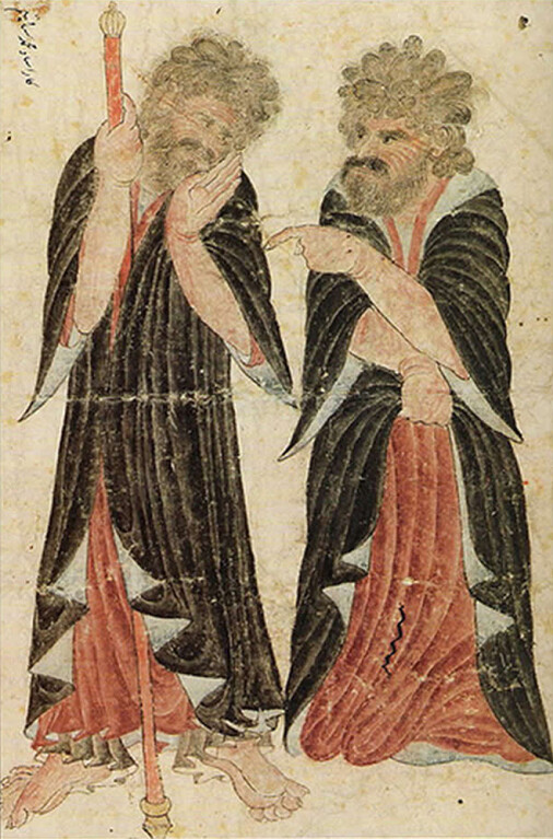 Dervişler: Mehmet Siyah Kalem çizimlerinde öne çıkan karakterlerden biri de çeşitli tarikatlara mensup dervişlerdir. Bunlar Kalenderi, Haydari, Budist dervişlerdir. Dervişler sopaları ve duygusal yüz ifadeleriyle tasvir edilmişlerdir.